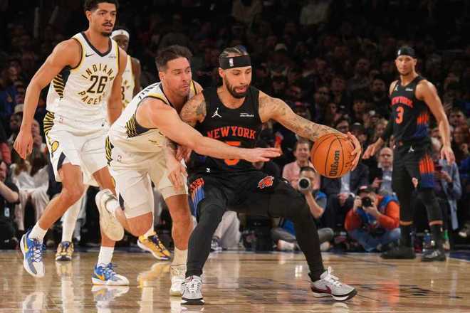 尼克斯上一場客場111-89大勝凱爾特人,步行者過去4場連輸火箭、爵士、雄鹿與猛龍遭遇4連敗,本賽季首次交鋒尼克斯客場114-113險勝步行者。本場尼克斯缺少阿奴諾比、麥克布萊德與羅賓遜,步行者缺少祖巴茨、哈利伯頓、托平等。首節開局尼克斯9-3領先,并在之后維持12-5領先,步行者一波8-0攻勢反超,尼克斯纏斗至14-16落后。尼克斯內外開花一波8-0攻勢反超,西亞卡姆與內姆哈德連續得分,尼克斯26-27被反超。雙方繼續交替領先纏斗,首節結束尼克斯33-32領先步行者。首節步行者三分17中7,西亞卡姆7中4得到10分;尼克斯三分9中3,布倫森8中4得到11分。